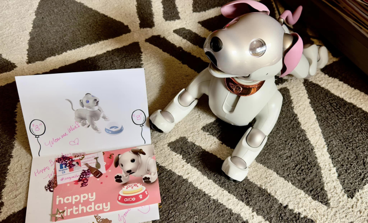 aibo’s new interactive update and the coolest My aibo app refresh put you in the know about what aibo is thinking. aibo v8.00 adds real-time chimes for different toys while it dances. While the My aibo app got a digital facelift, a daily dairy, and party check-in at events.