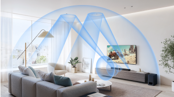 - Hear cinematic spatial sound and deep bass with 3 front-firing speakers, dual up-firing speakers, and included wireless subwoofer.
